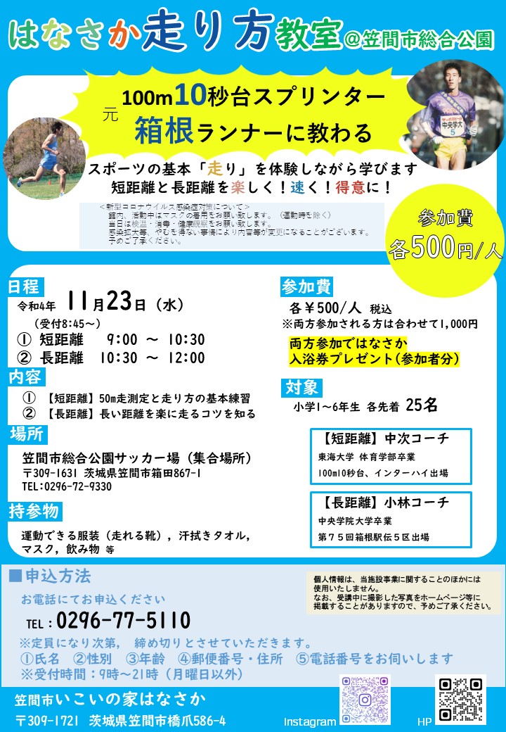 【イベント】はなさか走り方教室【11月23日】