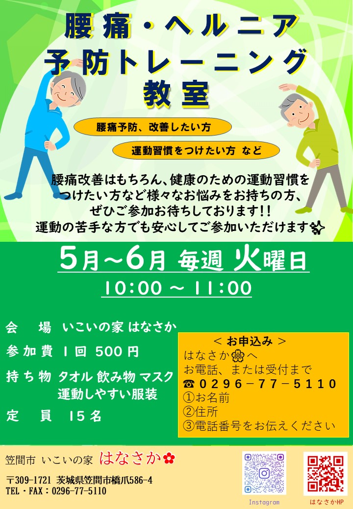【NEW教室】腰痛ヘルニア予防トレーニング教室【5月~毎週火曜日】
