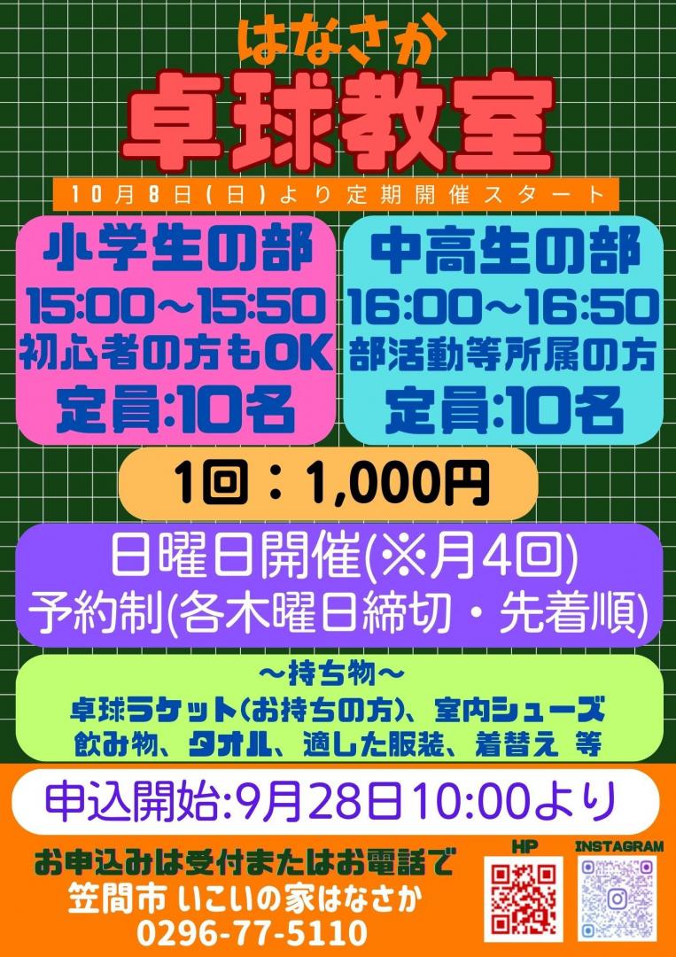 ご好評を頂いていた”はなさか卓球教室”が