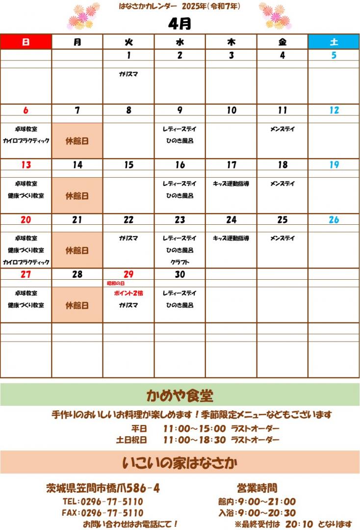 はなさか カレンダー (4月)